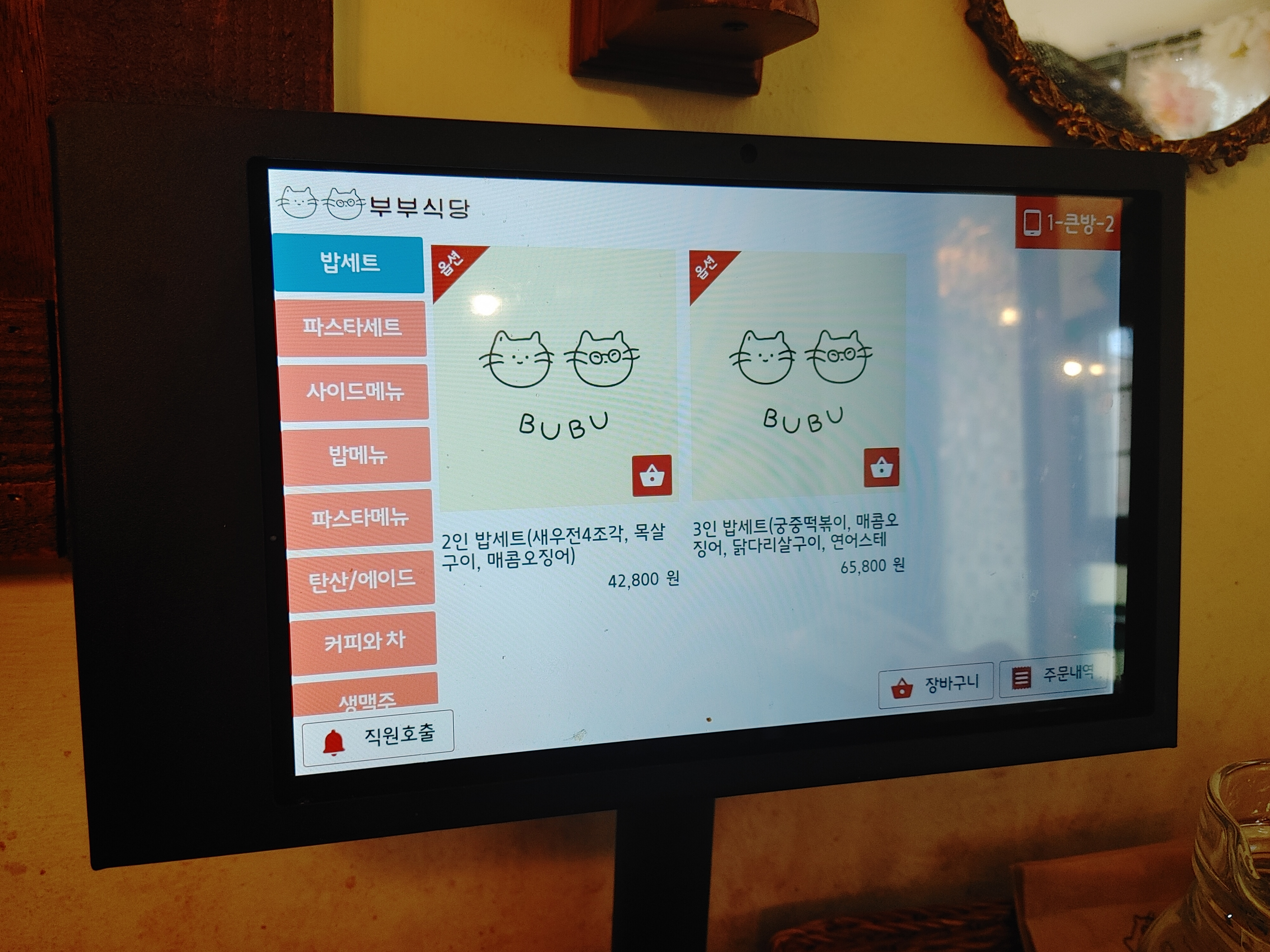부부식당에서 숫불닭다리살구이와 매콤오징어구이를 주문하였습니다.