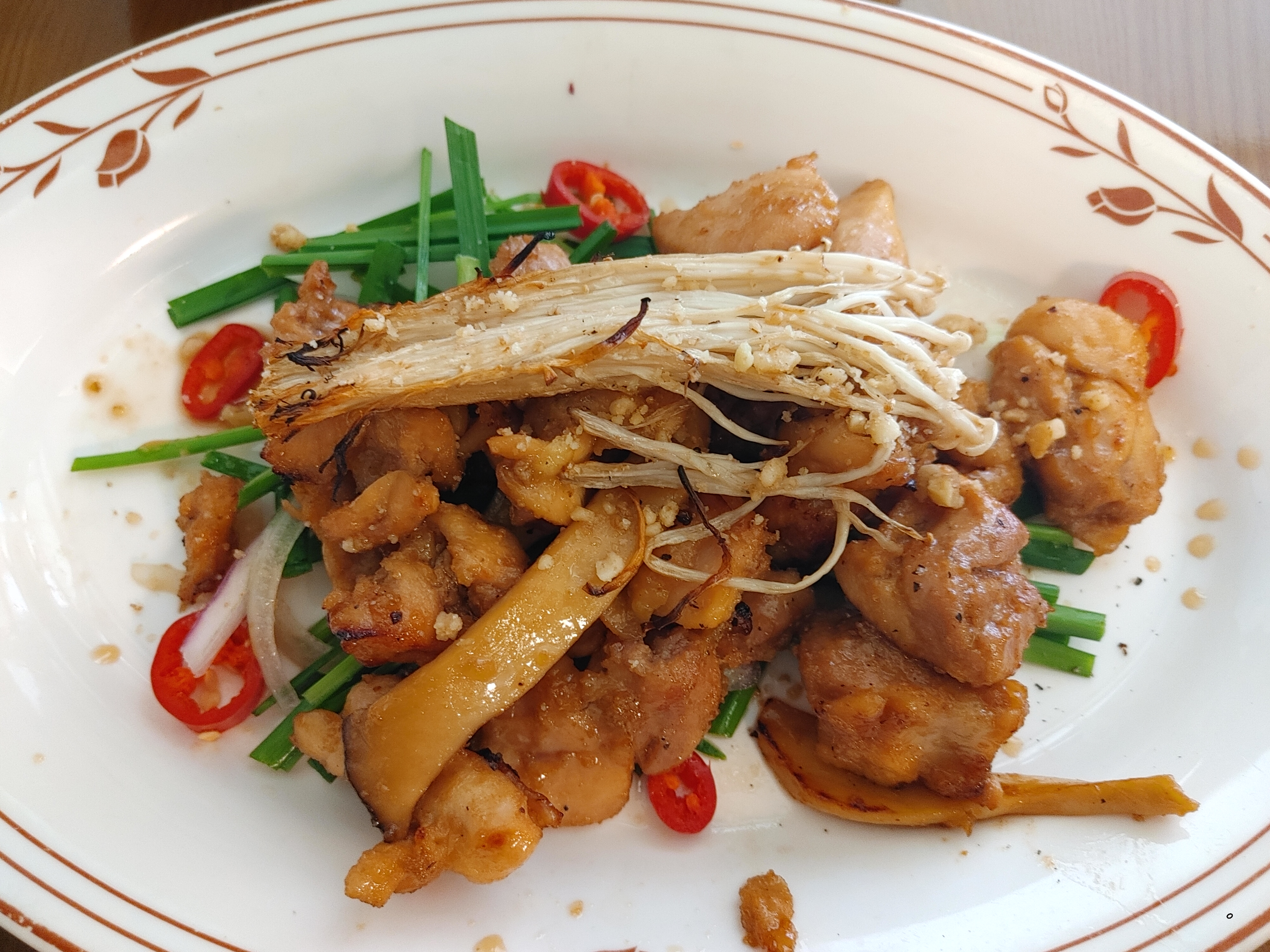숫불닭다리살구이는 전반적으로 맛이 좋았습니다.  음식은 전반적으로 깔끔하고 약간 매콤하면서 달콤하고 닭고기 맛이 좋은, 먹기 적당한 상태로 나왔습니다.