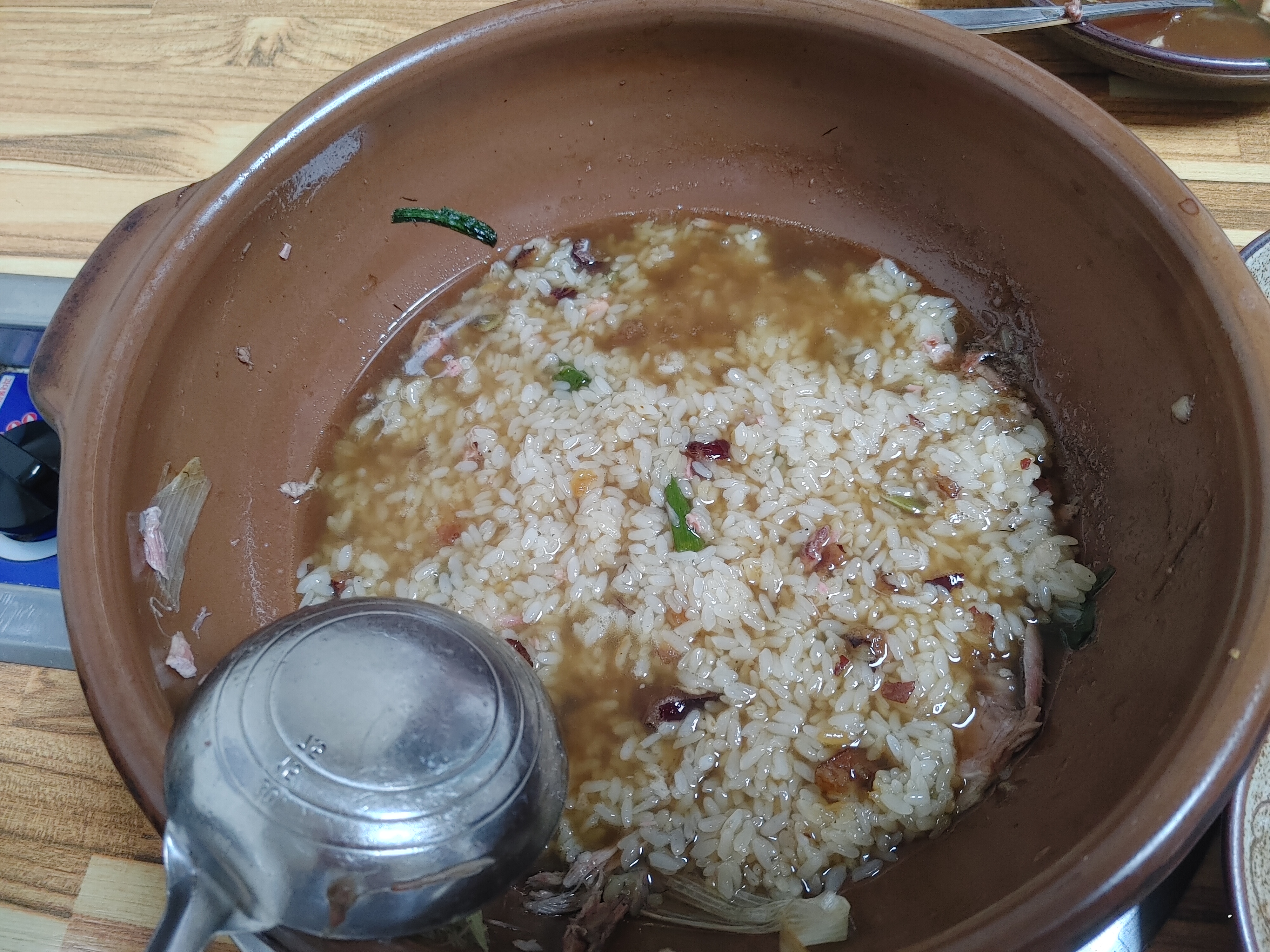 능이버섯오리백숙의 맛은 담백하고 좋았습니다. 향도 좋았고요. 능이버섯 맛도 좋은 편이었습니다. 다만 능이버섯이 비싸서 들어가는양이 많지는 않았습니다.  한번 근처 가실 일 있으시면 드셔보셔도 될 만한 맛이 었습니다. 참고로 능이버섯오리백숙은 오리고기 잘 안드시는 분들은 호불호가 있을 수 있습니다.  다음 번엔 추어탕을 먹어봐야 겠습니다.ㅎ