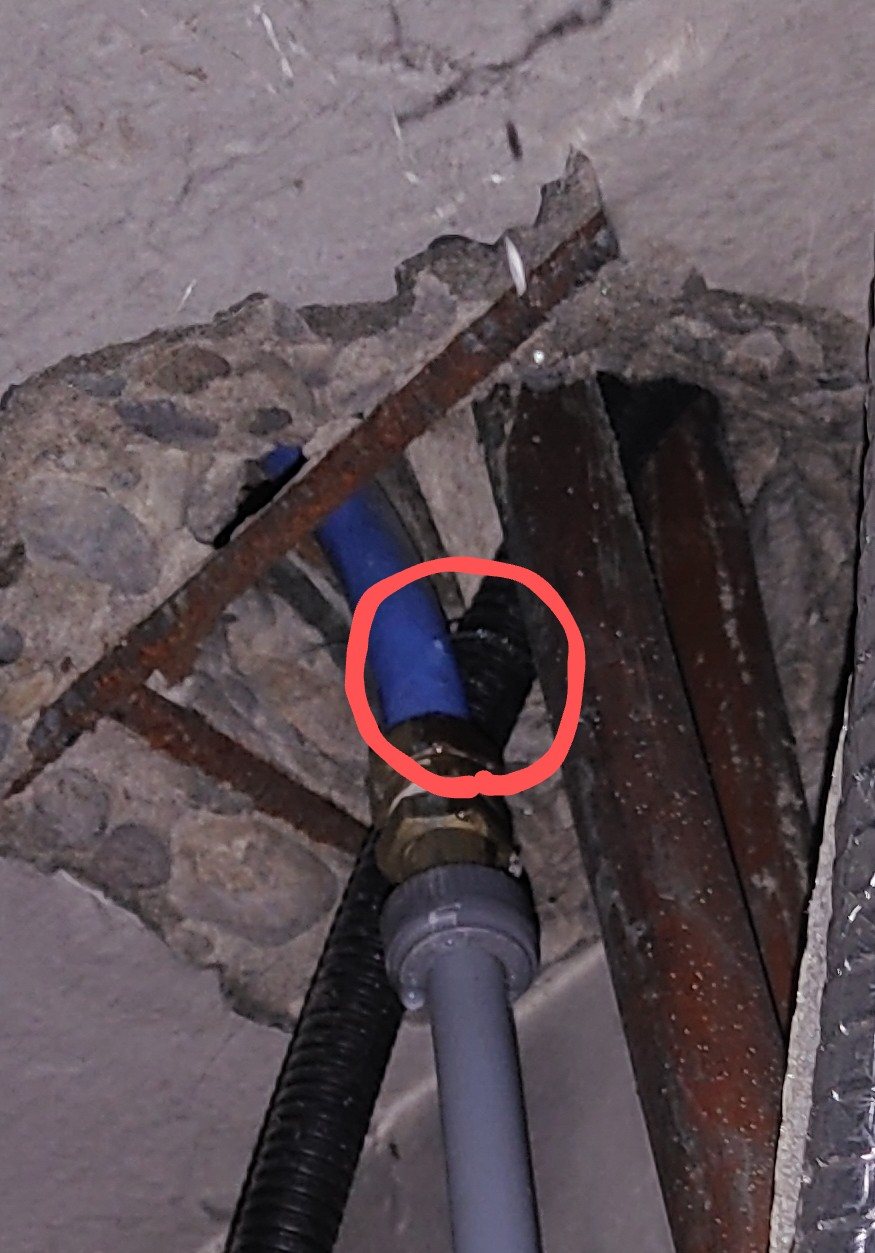 물이 새는 곳을 확인해보니 사진에서 처럼 파란색 관의 옆 에서 물이 새는 거라 아버지께서 확인후 설비사장님 오실때까지 신경이 많이 쓰여 일이 손에 잡히지 않으셨다고 하십니다. 생각보다 파란색 관의 길이가 짧아 자르고서 연결하기에는 옆과 위의 방해물들 때문에 잘못하면 1층에서 바닥을 파야 되지 않나 하여서 스트레스를 많이 받으셨다고 하십니다. 토요일날 설비 사장님이 일이 밀려 예정보다 3시간정도 늦게 도착하셨는데 1층 보고, 지하상태 보시더니 지하 파열된 관 자르고 옆에 안 사용하는 동파이프 자르고 해서 가까스로 연결시키고 가셨다고 합니다. 동파는 아니고 예전에 처음 공사할 때 관을 밀어넣다가 관옆에 기스가 나면서 그 기스 때문에 최근에 보일러를 돌렸더니 온도차이로 관이 터졌다고 말씀하셨습니다.