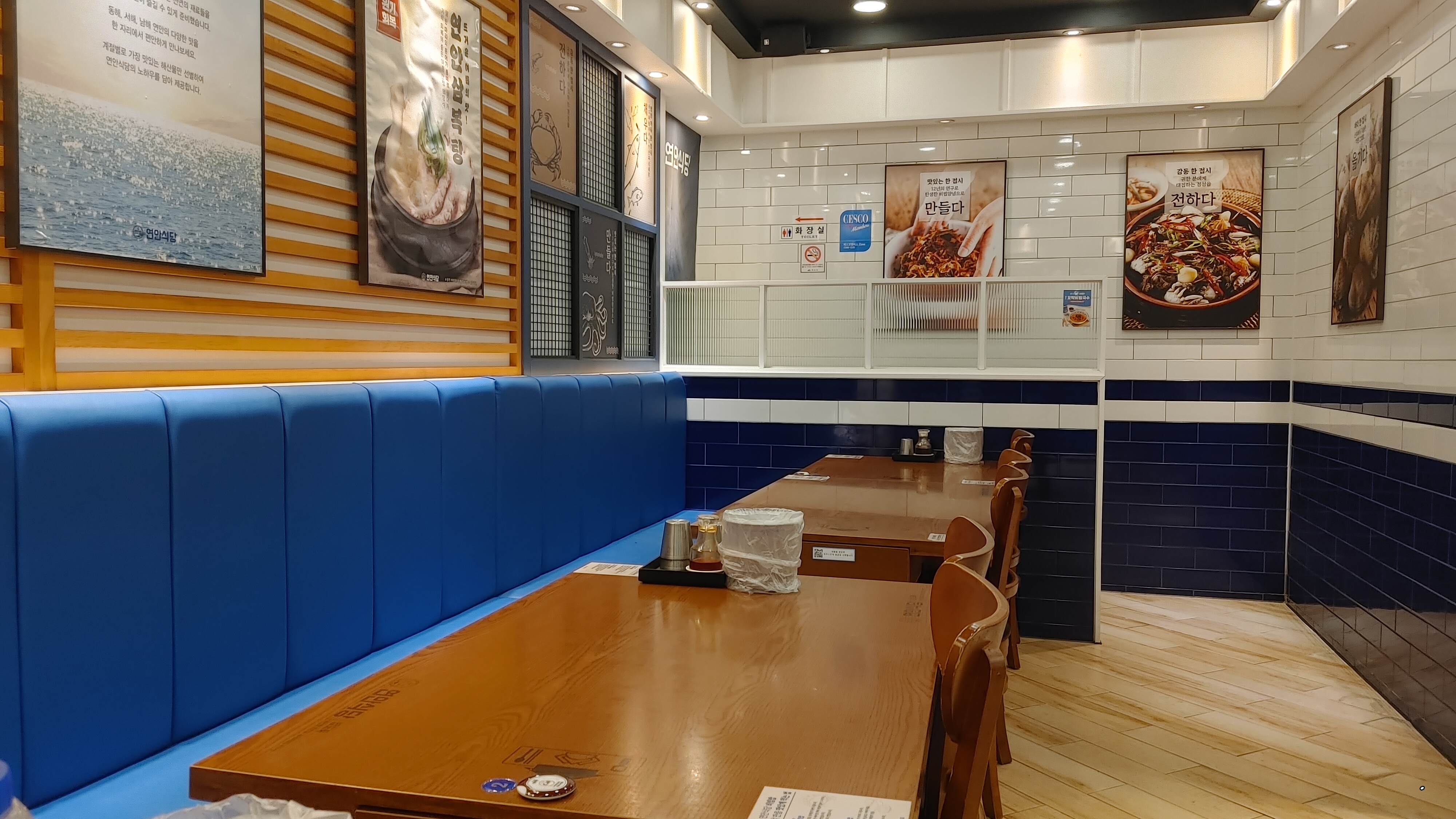 연안식당의 내부는 깔끔하고 여러명이 식사할 수 있는 음식점이었습니다. 다만 방문시간이 저녁9시가 넘어 자리가 한산하였습니다.