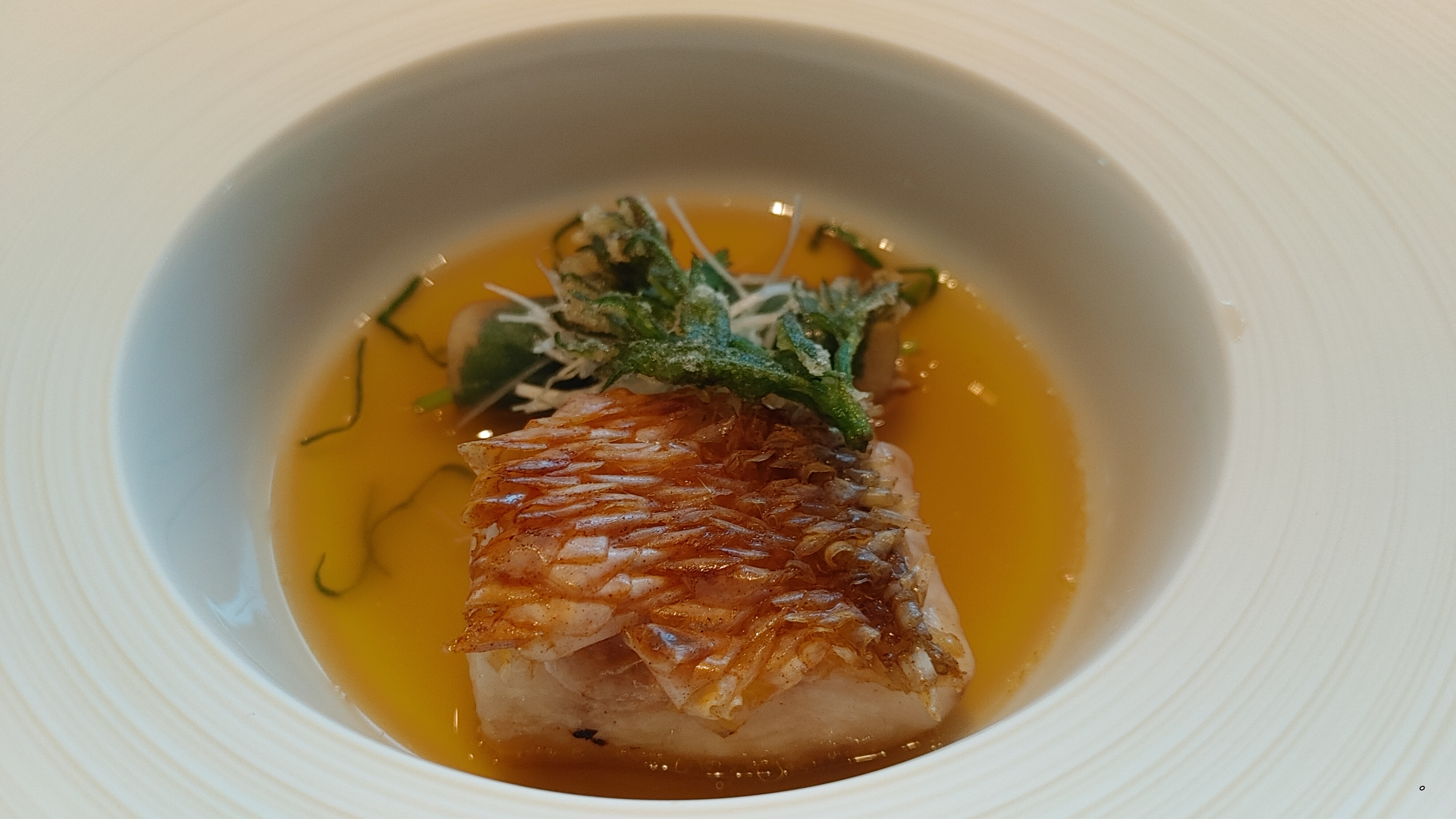 '한우 양지육수를 곁들인 제주옥돔, 봄나물' 아주 깔끔하고 맛있었습니다. 다 먹고서도 한우 양지 육수를 수저로 먹었다는.~~