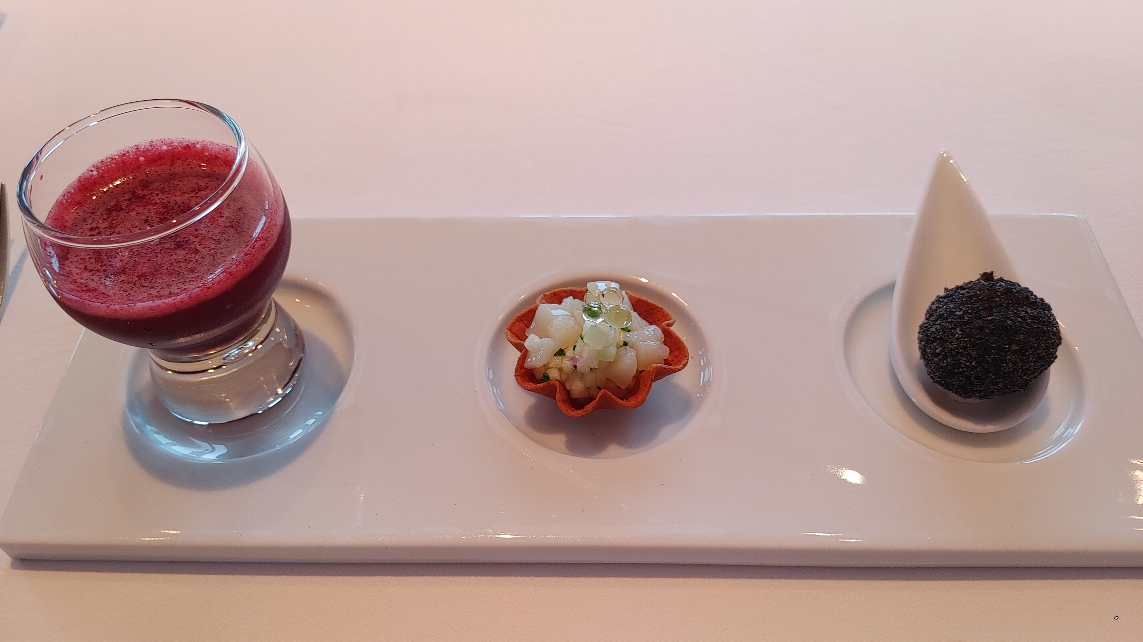 '브라타 치즈와 두릅부케를 곁들인 랍스타 전채, 샴페인토마토, 금귤' 예전에 갔던 주옥이 너무 아름답게 데코레이션 해서 그렇지 먹기 전에 이쁜 작품을 감상하는 듯한 마음이 들었습니다.