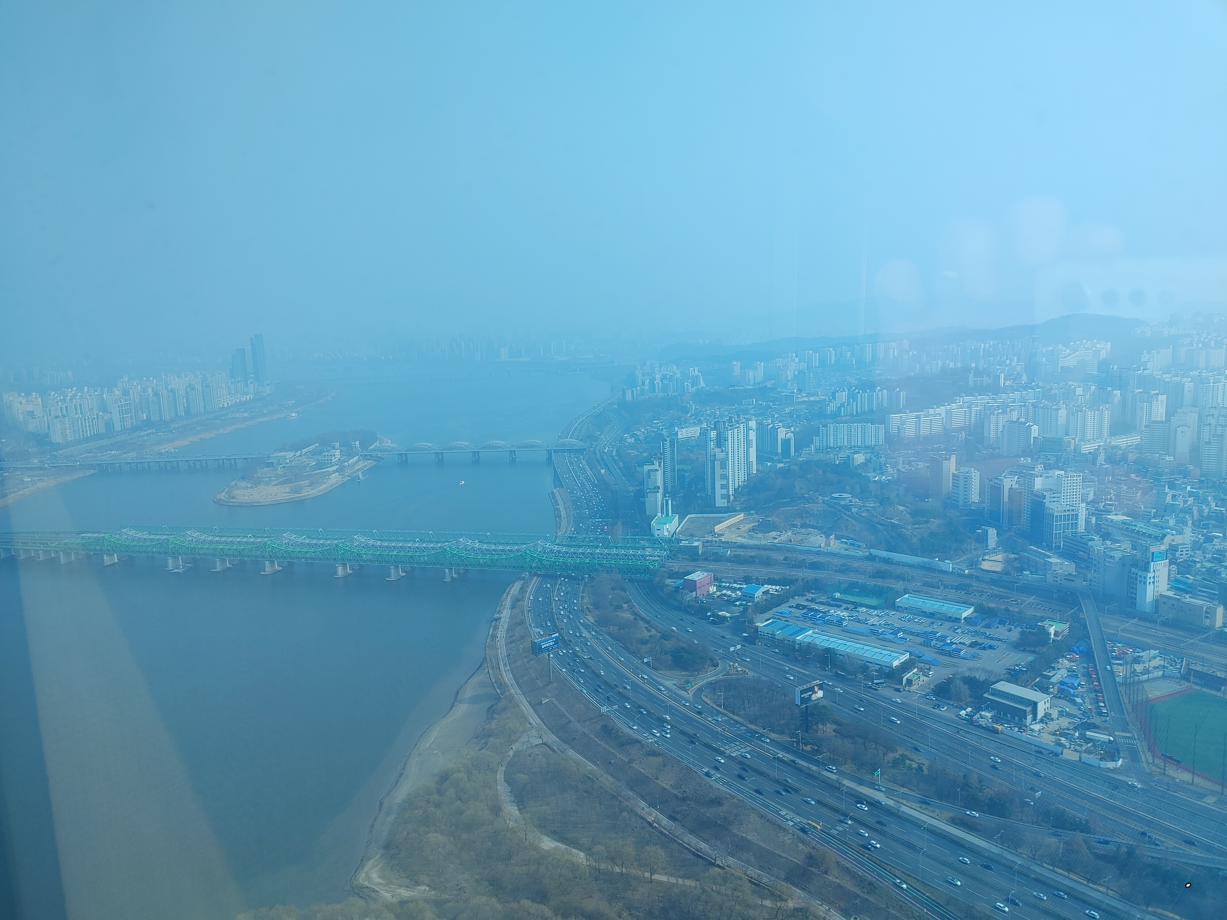 미리 예약 해놓고 이번에도 동생이 운전해서 63빌딩에 도착 엘리베이터를 타고 57층까지 올라 갔습니다.