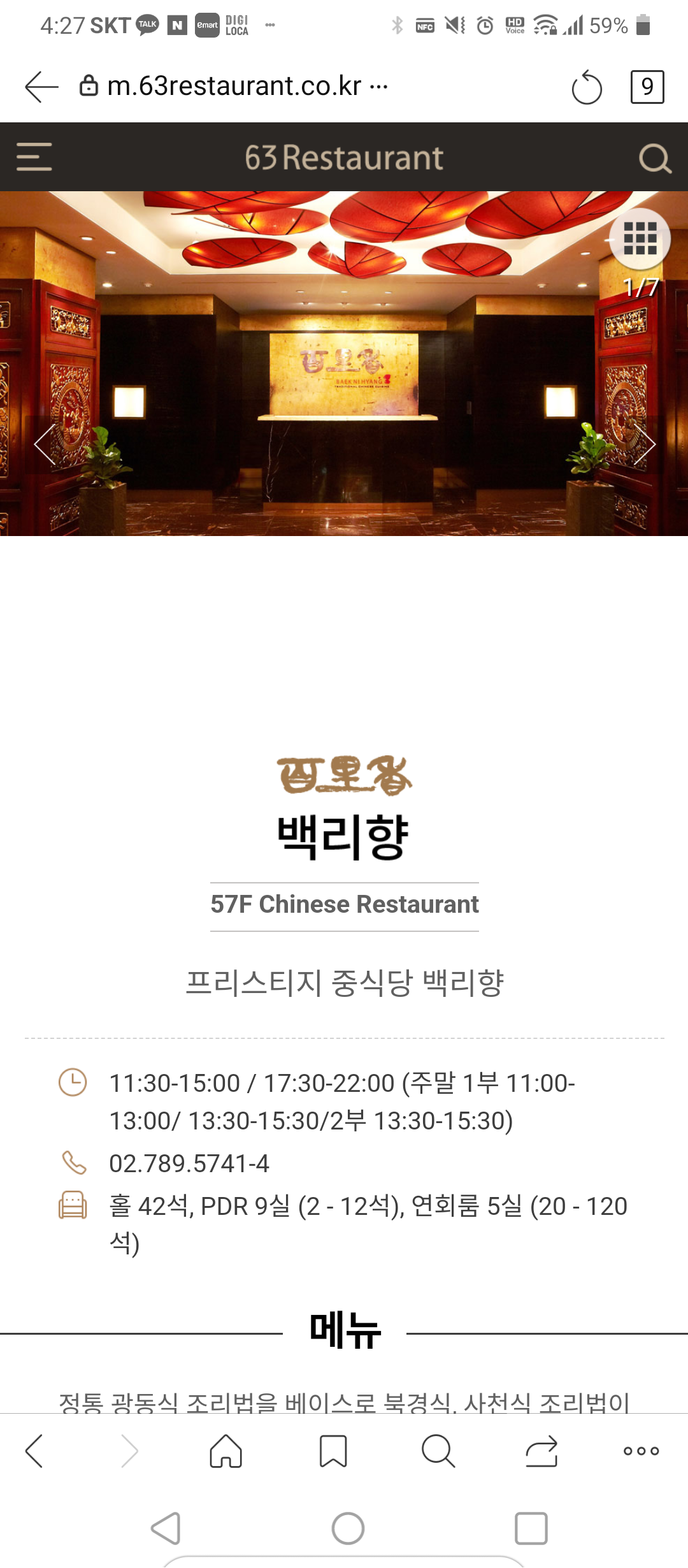 몇달전 가족모두 63빌딩 57층에 있는 중식당 백리향에 다녀왔습니다.