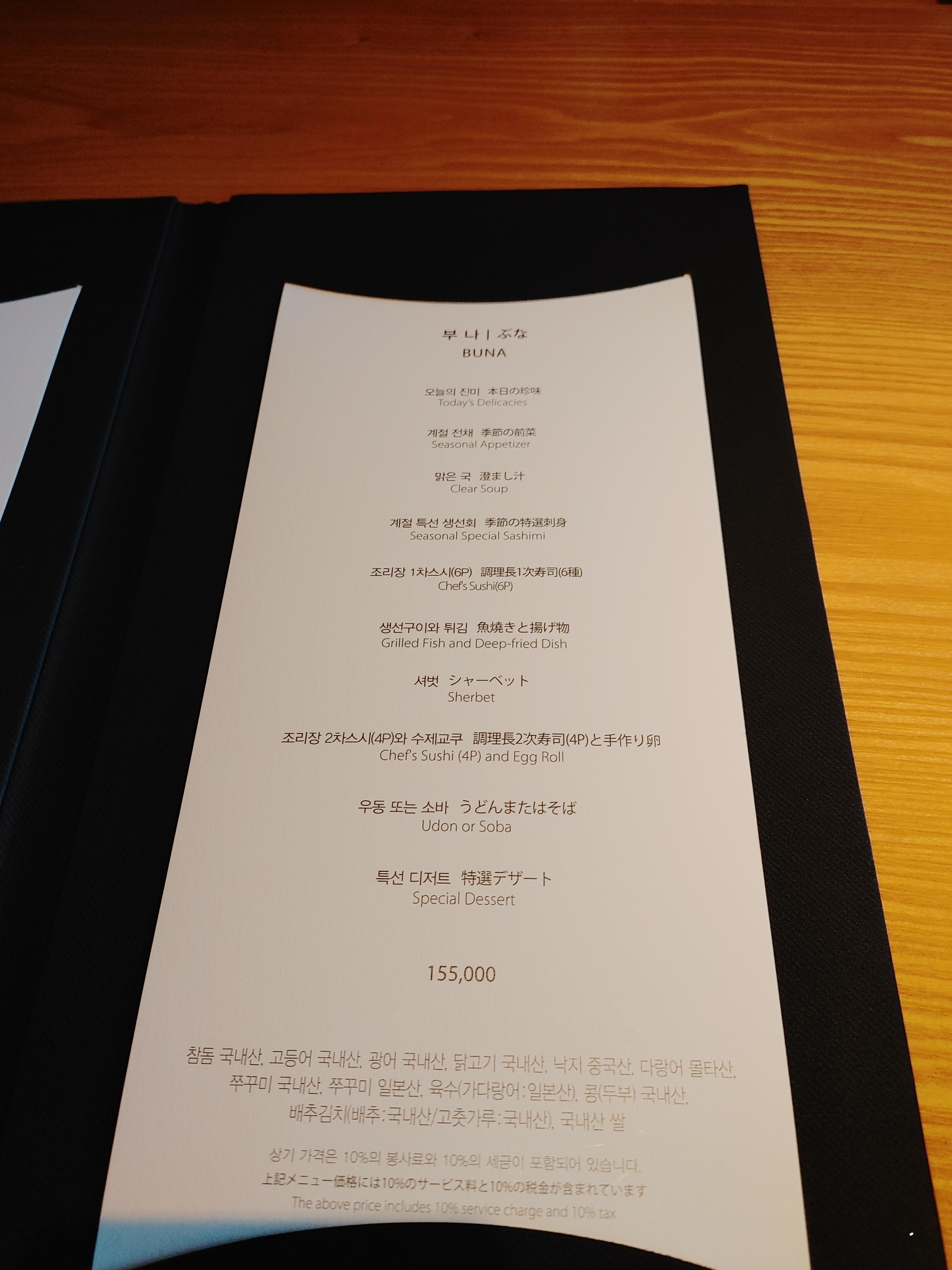 오늘은 슈치쿠에서 부나코스를 주문하였습니다.