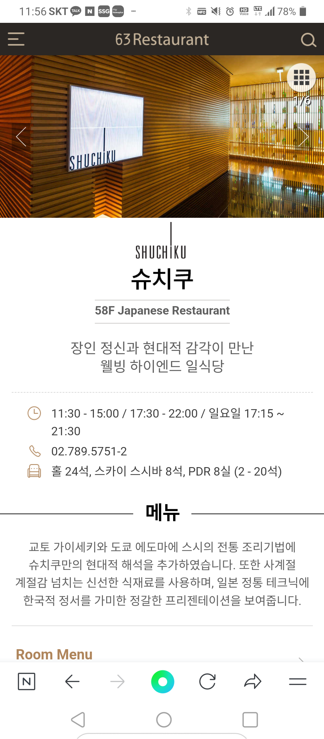 오늘는 올봄에 방문하였던 63빌딩 58층에 위치한 슈치쿠 일식집에 대하여 써보고자 합니다. 슈치쿠는 '붉은 대나무'라는 의미라고 합니다. 이때도 블로그 작성에 별 관심이 없어서 음식만 찍어서 나머지 식당 내외부의 사진이 없는 것에 대하여 아쉬운 마음이 듭니다.