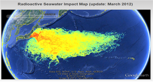 2011년 3월 11일 일본 동북부 지방을 강타한 규모 9.0의 대지진과 쓰나미로 인해 후쿠시마 원자로 1~3호기의 전원이 멈추면서 촉발된 원자력 발전소의 방사능 누출사고가 있었습니다. 방사능 오염도 시물레이션에 의하면, 그 당시 처리 안 되고 바다로 유출된 방사성 오염물질은 안타깝게도 12년이 지난 지금 벌써 지구의 온 바다에 구석구석 쫙 퍼져 있다고 보시면 됩니다. ( 다만 이것은 시뮬레이션을 근거로 한것이고 실제 상황은 다를 수 있다고 생각되어 집니다. 바다의 자정작용 등은 계산되지 않았을 수 있으니까요. 이 시물레이션이 맞다면 세슘등의 방사능 물질이 세계 여기저기 바닷물에서 어느 이상 과하게 체크되어야 하는데 그렇다는 이야기는 아직 못들어봤습니다. )