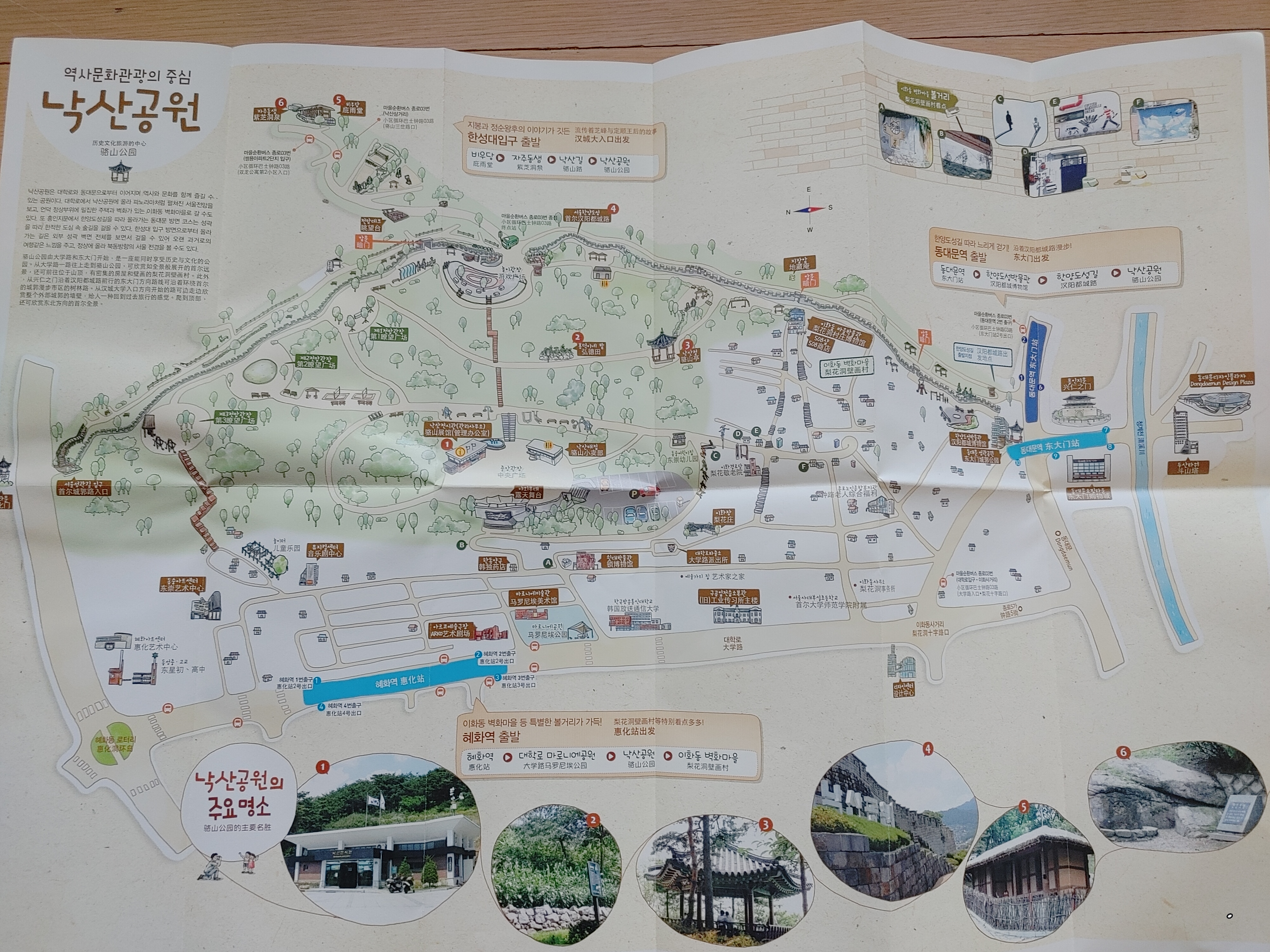 낙산전시관 안에 들어가보면 입구에 접혀진 종이로 된 낙산안내도가 있어요. 가지고 다니시면서 보시면 도움이 됩니다.
