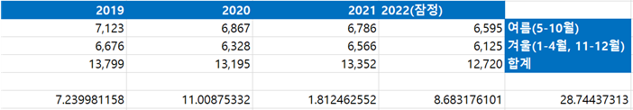 [부록] 이 보고서 작성에 사용된 데이터는 KOSIS 및 기상자료개방포털에서 해당하는 자료를 검색한 후 xls 또는 csv 파일로 다운로드하여 얻었다.
